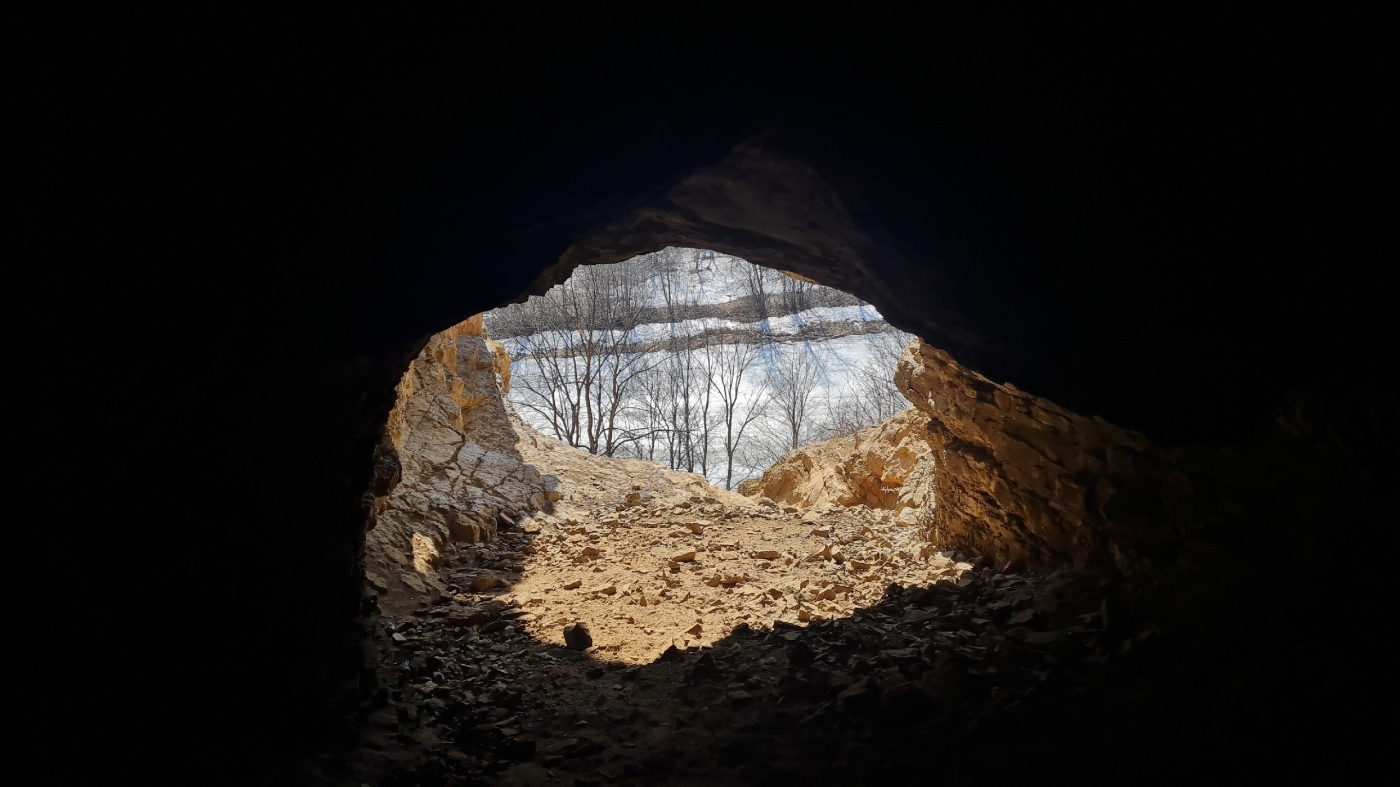 Место указано приблизительно в районе метров 30. На месте много табличек, поэтому вход найти проблем не составит.