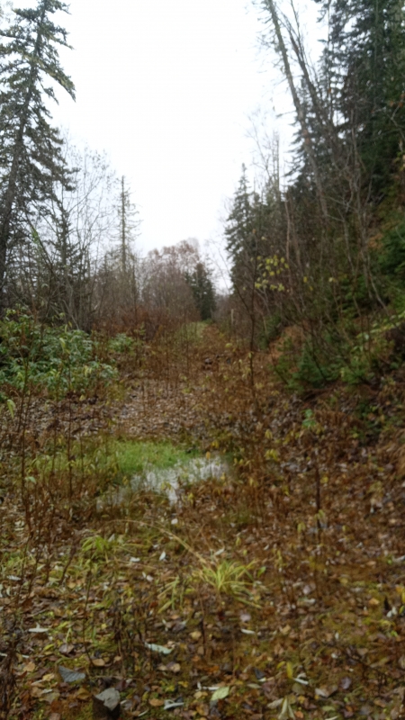Спустился по бурелому.