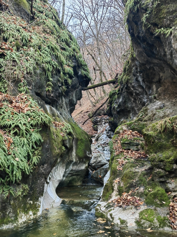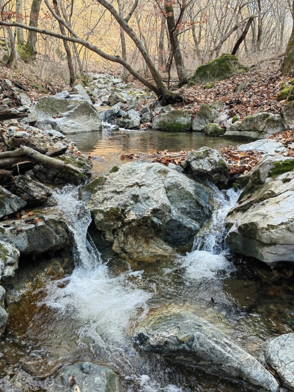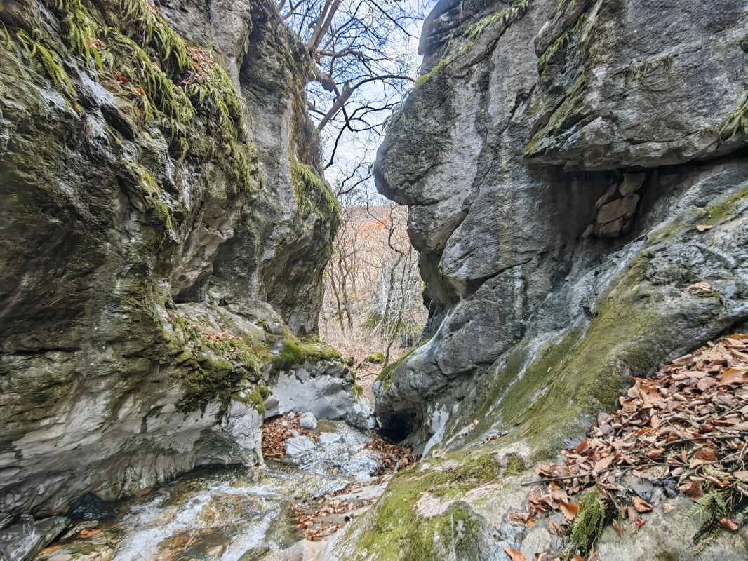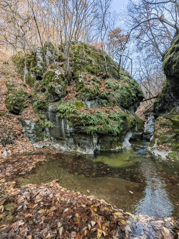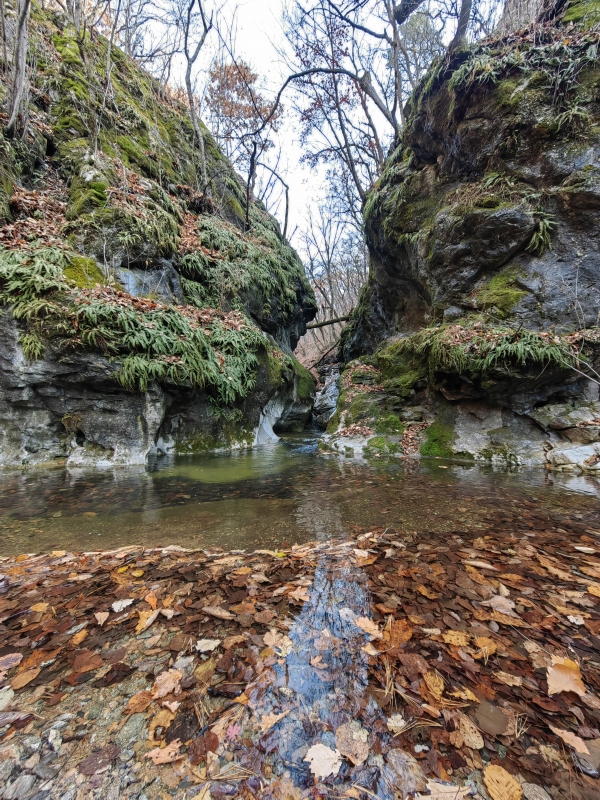 Лайтовый прогулочный маршрут. Несколько раз пересекает ручей. Вся дорога от центральной трассы до каньона заняла 30 минут. На обратном пути можно прогуляться до пещеры Малая Николаевская.
